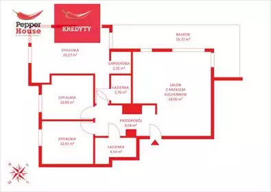 - salon z aneksem kuchennym,- sypialnia nr 1,- sypialnia nr 2,- łazienka,- WC,- przedpokój,- korytarz,+balkon- miejsce postojowe...