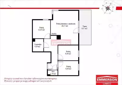 Opcja 4-pokojowego mieszkania z miejscem do wydzielenia GARDEROBY lub pomieszczenia gospodarczego. OPIS NIERUCHOMOŚCI: - pow. 79...