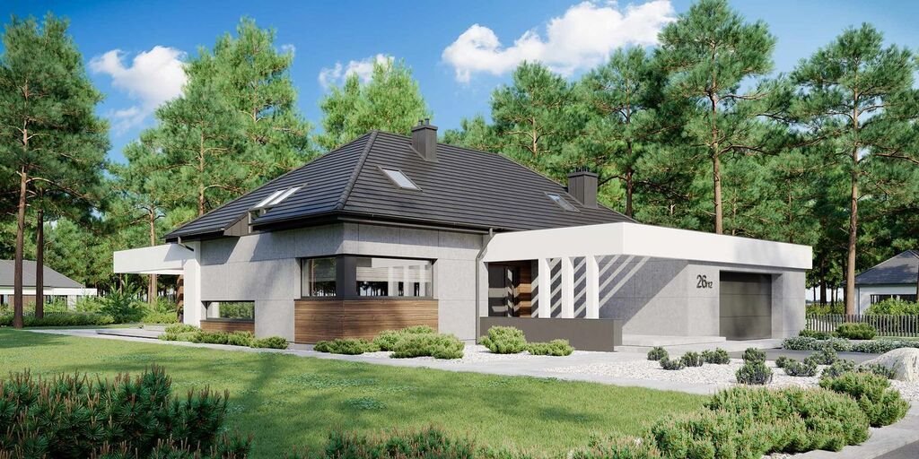 - Dom parterowy + poddasze z gotowym projektem pod 3 pokoje