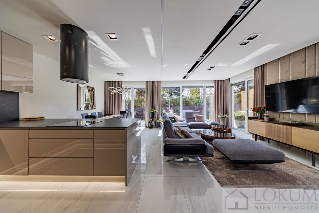 Sprzedawana rezydencja to nowoczesny dom w zabudowie bliźniaczej, który doskonale wpisuję się w otoczenie, a jednocześnie wyróżnia elegancką architekturą. Położona jest w zielonym, cichym miejscu, dającym możliwość regeneracji i relaksu.