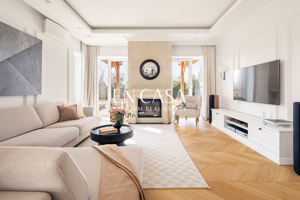 The property has been finished to the highest standards, with attention to every detail. High-quality materials, such as custom-made furnishings: MDF furniture, a sandstone fireplace, and stone terraces, AEG kitchen appliances, and natural oak parquet flooring (freshly sanded and varnished). High ceilings and panoramic windows with high-class security (triple-pane PVC) provide a feeling of spaciousness and excellent lighting throughout.