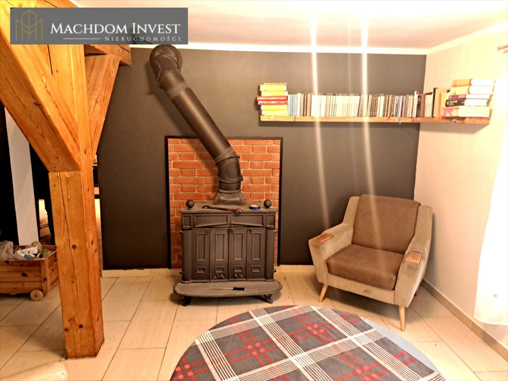 W domu znajduje się wiatrołap ,salon z kominkiem na drewno i tarasem- dodatkowym miejscem do wypoczynku, aneksem kuchennym z meblami z AGD( płyta kuchenna, piekarnik ,lodówka) sypialnia, oraz łazienka z WC, natomiast na piętrze trzy pokoje służące jako dziecięce lub gościnne. Dom z garażem 30m2 i piwnicą 50m2 ogrzewany piecem na gaz, (ogrzewanie podłogowe i grzejniki).