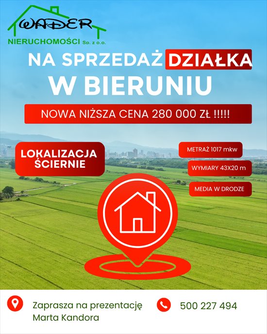 Na sprzedaż atrakcyjna działka budowlana w Bieruniu o powierzchni 1017 m².
