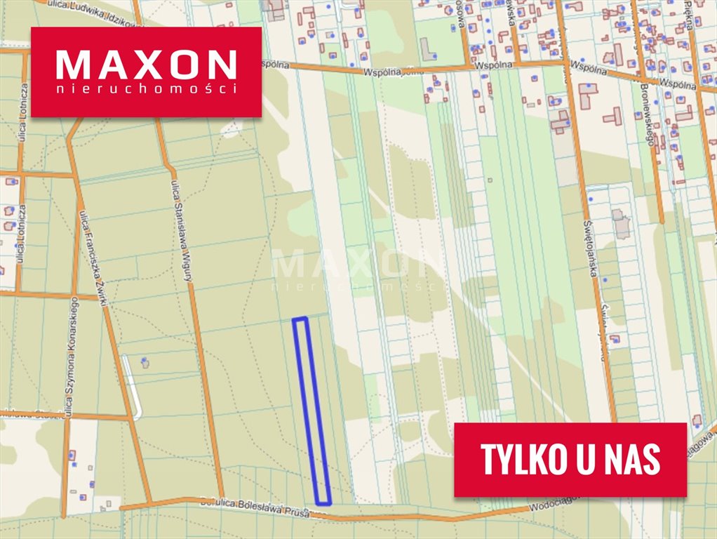 The nearest paved roads are Bolesława Prusa and Wspólna Streets. The immediate vicinity consists mainly of single-family housing.