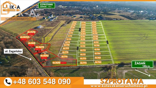 Blisko centrum Szprotawy. W pobliżu szkoła podstawowa, przedszkole, sklepy sieciowe. Uzbrojenie na granicy działek w trakcie realizacji. Kupujący nie ponosi kosztów obsługi Pośrednika, zwolniony jest też z podatku PCC .