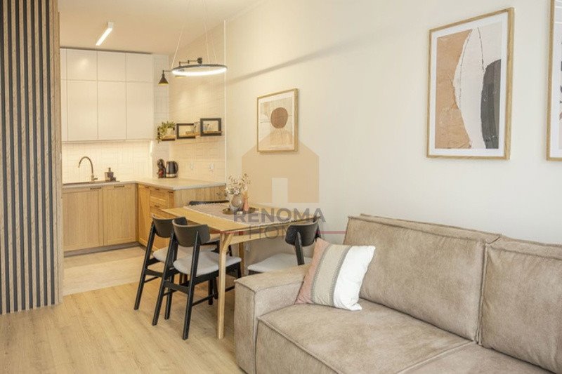 Całość wykończona z dbałością o detale: panele winylowe, modne lamele ścienne, nowoczesne oświetlenie LED. Mieszkanie sprzedawane jest w pełni umeblowane i wyposażone - dokładnie tak, jak na zdjęciach.