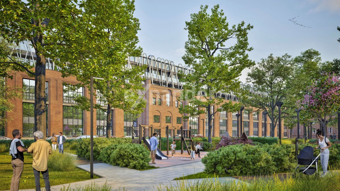 Rewitalizowany teren z industrialną estetyką Łodzi