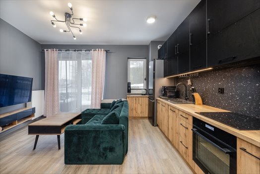 - komfortowy salon z aneksem kuchennym i wyjściem na ogródek,
