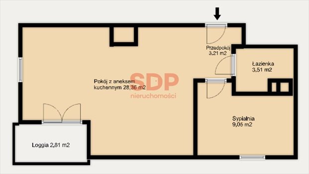 Do mieszkania przynależy loggia o powierzchni 2,81 m2