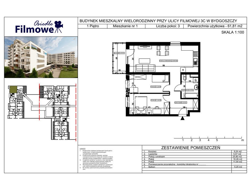 Przestronne 3-pokojowe mieszkanie na sprzedaż w Bydgoszczy Bydgoszcz, Bartodzieje Małe, Filmowa - 61,81m2