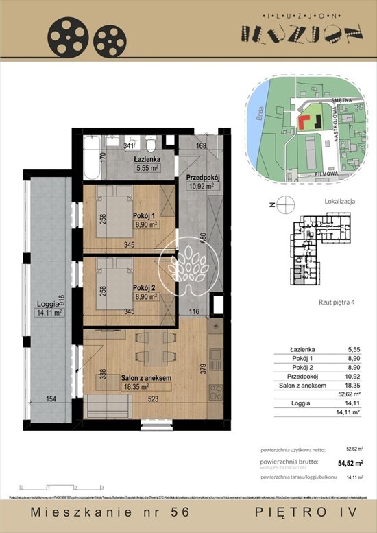 - Powierzchnia całkowita54,58 m2