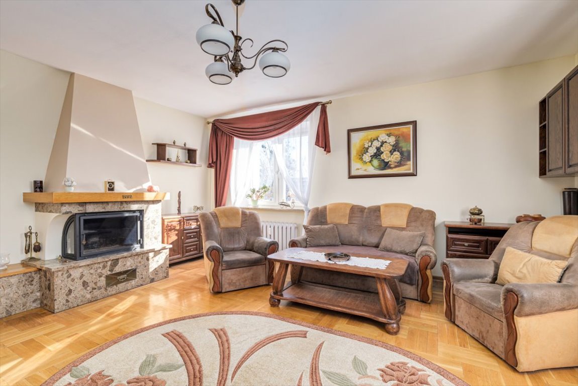 W salonie klimatyczny kominek.