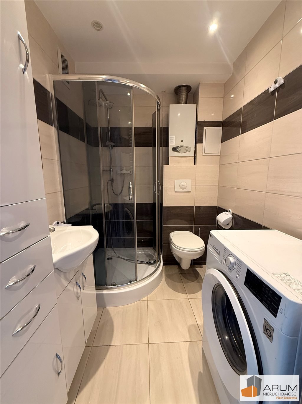 To 38-metrowe mieszkanie składa się z dwóch pokoi, stanowiąc idealne rozwiązanie dla pary lub singla. Podłogi w pokojach wyłożone są panelami, co dodaje wnętrzom ciepła i przytulności. Kuchnia jest oddzielna. Łazienka jest wyposażona w kabinę prysznicową i pralkę, co zwiększa komfort codziennego życia.