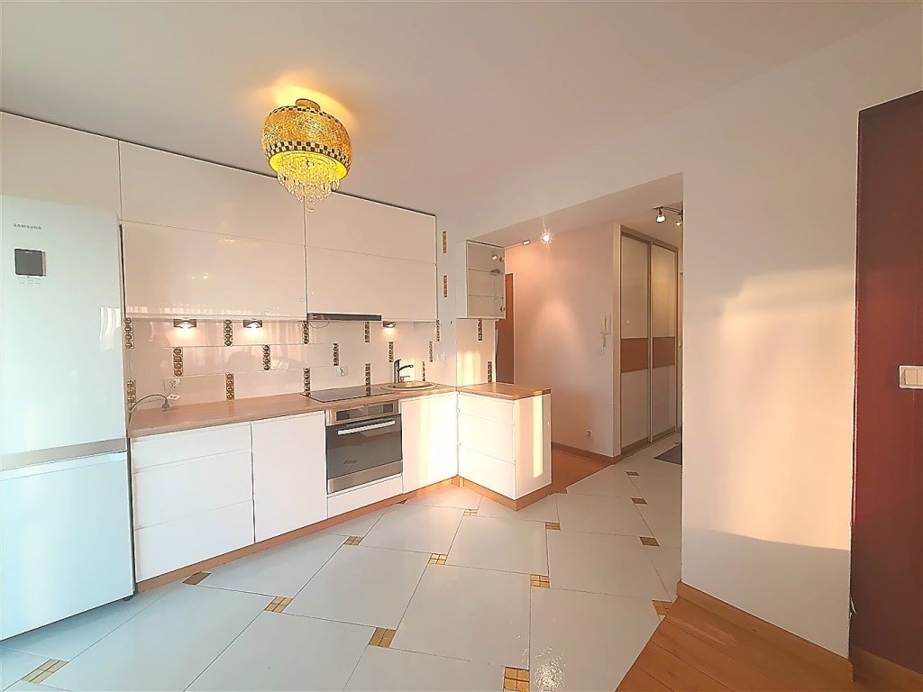 Mieszkanie ma funkcjonalny rozkład, dzięki czemu daje poczucie komfortu i przestrzeni. Jest w pełni umeblowane: duża szafa z drzwiami przesuwnymi w holu, skórzana kanapa z fotelem, szafka RTV, stojąca witryna i szklany stolik kawowy w salonie, podwójne łóżka z materacami w sypialniach, w jednej z nich dodatkowo duża szafa z drzwiami przesuwnymi, szklany stół z krzesłami w aneksie kuchennym oraz zabudowa kuchenna na wymiar. Mieszkanie wyposażone w niezbędne urządzenia AGD i RTV, tj. lodówka, zmywarka, pralka, płyta indukcyjna, piekarnik elektryczny, okap i telewizor.