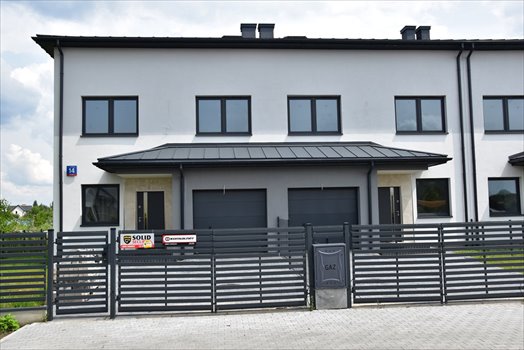 Bliźniak składa się z pięknie doświetlonego przez duże suwane drzwi salonu i jadalni, kuchni w osobnym pomieszczeniu, 4 sypialni, 3 łazienek, garażu, przed którym jest miejsce na zaparkowanie dodatkowego samochodu oraz kotłowni.