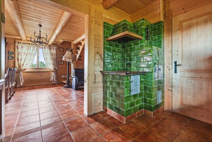 Functional house made of wood, insulated, located on a plot of area. 5000 m2 . It harmonizes with the environment thanks to ecological solutions such as a photovoltaic system, air conditioning, ecological sewage treatment plant and additional fireplace heating. It is located on a closed property which, thanks to a high fence, ensures complete privacy.