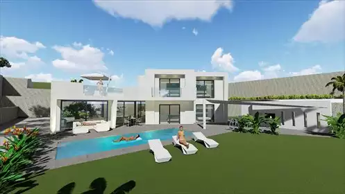 Willa jest zlokalizowana na jednym piętrze. Posiada 4 sypialnie, salon, 2 łazienki, basen, garaż oraz prywatny parking.Położona ...