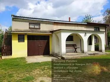 Dom wykonany w 2000r. od podstaw z drewna o pow. 125 m2 na działce 400 m2 (z opcja jej powiększenia) przy drodze asfaltowej w m...