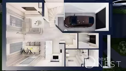 :: Krótko:Zamknięte osiedle, cicho i ustronnie położone. Nowoczesny dom w zabudowie bliźniaczej- o pow. 207 m2 na działce 410m2...