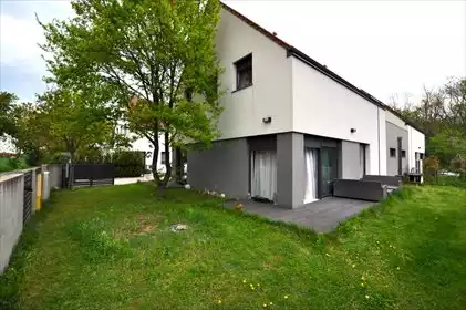 Nowoczesny dom 293 m2 z ogrodem w zabudowie bliźniaczej z bezpośrednim widokiem na zieleń za oknami, w cichej i spokojnej okolic...