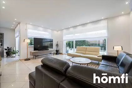 Prezentujemy na sprzedaż bliźniak urządzony w nowoczesnym stylu, zlokalizowany na zamkniętym osiedlu, w zielonej części Wilanowa...
