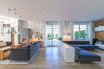 Atuty:Dom z kominkiem oraz unikalnym, fińskim piecem steatytowym NunnaUuni – sercem domu, magazynującym ciepło.Działka przypomin...