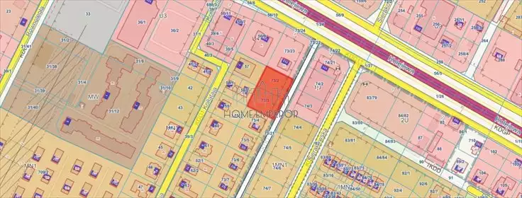 Działka budowlana w kształcie trapezu o wymiarach dłuższy bok 100m2, krótszy 53m2, szerokość 17,5 m2. Działka objęta jest Studiu...