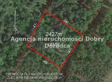 Urokliwa działka leśna z prawem zabudowy 2427 m 2 w Ojrzanowie gm. Żabia Wola. Kształt zbliżony do prostokąta o śr. wym. ...