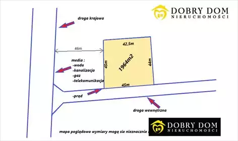 ** Do sprzedania atrakcyjna nieruchomość gruntowa **+ powierzchnia: 1964 m2+ wymiary: 43m x44mx43mx46m+ media: woda, kanal...
