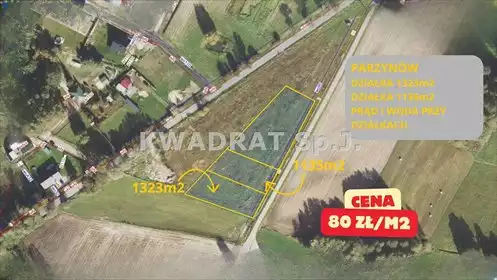 Atrakcyjne działki w Parzynowie. KWADRAT - Nieruchomości, Kredyty, Ubezpieczenia prezentuje na sprzedaż wyjątkowe działki , poło...