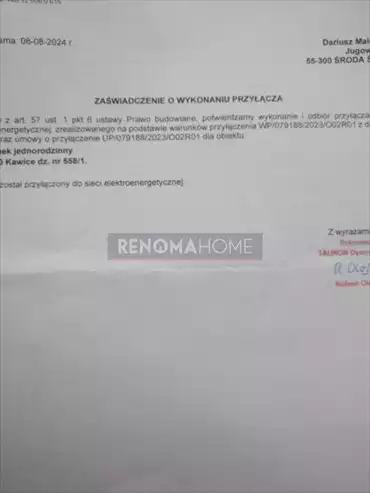 Oferuję na sprzedaż działka budowlana o numerze ewidencyjnym 558/1, położona w miejscowości Kawice (gmina Prochowice, woj. dolno...