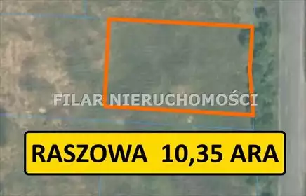 DZIAŁKA BUDOWLANA W RASZOWEJ 12 ARÓW - UZBROJONA W CENIE 95 TYS. Na sprzedaż działka budowlana, o pow. 11,98 ara położo...