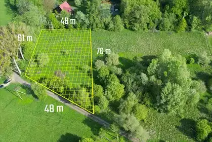 Na sprzedaż działka budowlana nr 124 (910 m²) z przynależnym lasem 1400 m² – razem ponad 2300 m² prywatnej przestrzeni. Cena: 13...