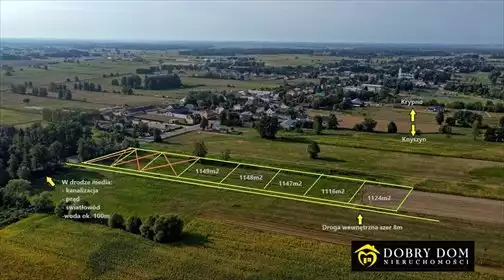 Tylko w Premium Nieruchomości!Oferta na wyłączność!Na sprzedaż Polecamy działkę w Krypnie Kościelnym z warunkami na budowę domu ...