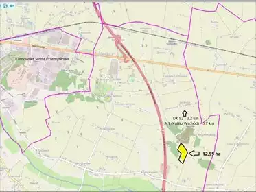 Teren składa się z trzech działek o łącznej powierzchni 2,2 ha, z czego 6 315 m² przeznaczonych jest w miejscowym planie zagospo...