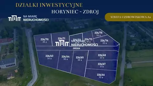 DZIAŁKI INWESTYCYJNE W HORYŃCU-ZDRÓJ – POD PENSJONAT / DOMY WAKACYJNE / USŁUGINa sprzedaż 12 działek budowlanych o łącznej powie...