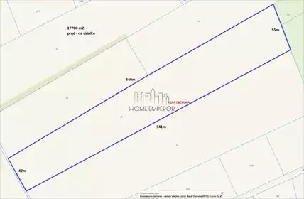 Działka rolna położona przy drodze asfaltowej pod zabudowę jednorodzinną o powierzchni 18700m, wymiary ok. 44-500, Media woda...
