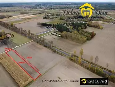 Działka rolna 1,3ha I Pogorzelce I Prostokąt Działka rolna w kształcie prostokąta o powierzchni 13068m2 w miejscowości Pogorzelc...