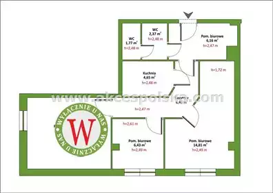 Klimatyzowany | Serwerownia i dostęp do światłowodu | Sala konferencyjna | Ponad 30 stanowisk pracy*****ROZKŁAD POMIESZCZEŃ:* Dw...
