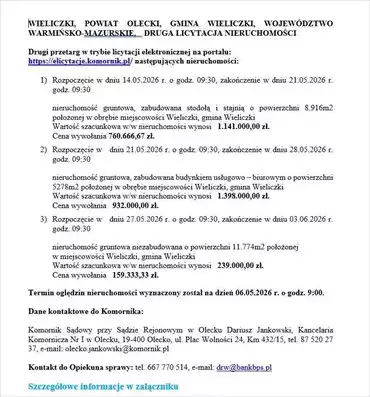 WIELICZKI, POWIAT OLECKI, GMINA WIELICZKI, WOJEWÓDZTWO WARMIŃSKO-MAZURSKIE, DRUGA LICYTACJA NIERUCHOMOŚCIDrugi przetarg w trybie...