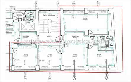 Lokal składa się z pięciu oddzielnych pokoi biurowych, korytarza oraz pom. socjalnego z kuchnią i toaletą. Układ pomieszczeń mo...