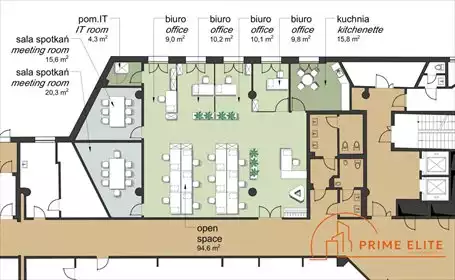 PRIME ELITE Nieruchomoścido wynajmu przestronne biuro na 8 piętrze o powierzchni 275 m2 netto (303 m2 brutto) w nowoczesnym biur...