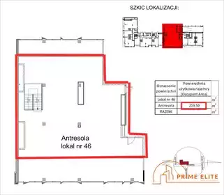PRIME ELITE Nieruchomościoferuje do wynajmu magazyn na antresoli o powierzchni 219 m2 (tj 232 m2 brutto) w budynk...