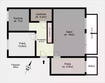 Opiekun oferty: Adam Hanczyn +48 602 101 602 2 pokoje (z możliwością 3) | mieszkanie 54,18m2 + balkon | Krzyki (Wrocław) Otoczen...