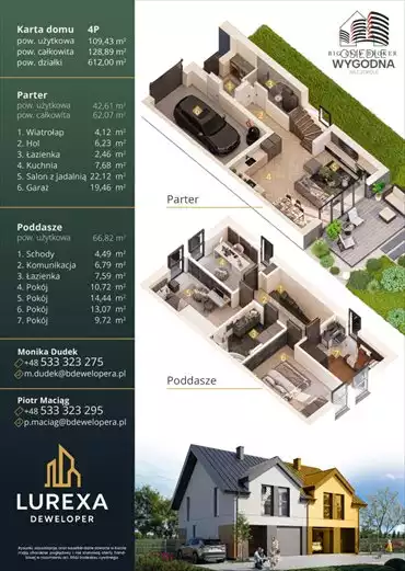 Komfortowe mieszkanie o powierzchni 60,49 m², usytuowane na 3 piętrze. Składa się z dwóch pokoi, pokoju dziennego oraz osobnej...