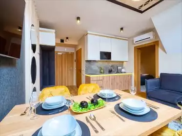 Apartament w nowym budownictwie w ścisłym centrum Zakopanego. Salon z aneksem kuchennym, sypialnia, łazienka, antresola składają...