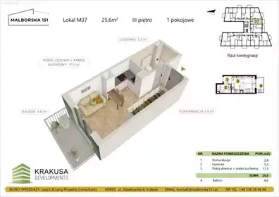 Biuro sprzedaży nowej inwestycji pod nazwą Malborska 151 ma zaszczyt przedstawić komfortowe mieszkanie na sprzedaż, zlokalizowan...