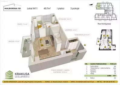 Biuro sprzedaży nowej inwestycji pod nazwą Malborska 151 ma zaszczyt przedstawić komfortowe mieszkanie na sprzedaż, zlokalizowan...