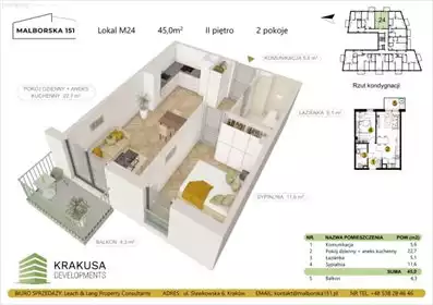 Biuro sprzedaży nowej inwestycji pod nazwą Malborska 151 ma zaszczyt przedstawić komfortowe mieszkanie na sprzedaż, zlokalizowan...