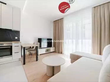 Nowoczesne mieszkanie w nowym budownictwie z 2024 r. (osiedle Górka Narodowa). Składa się z salonu z aneksem kuchennym (panele n...